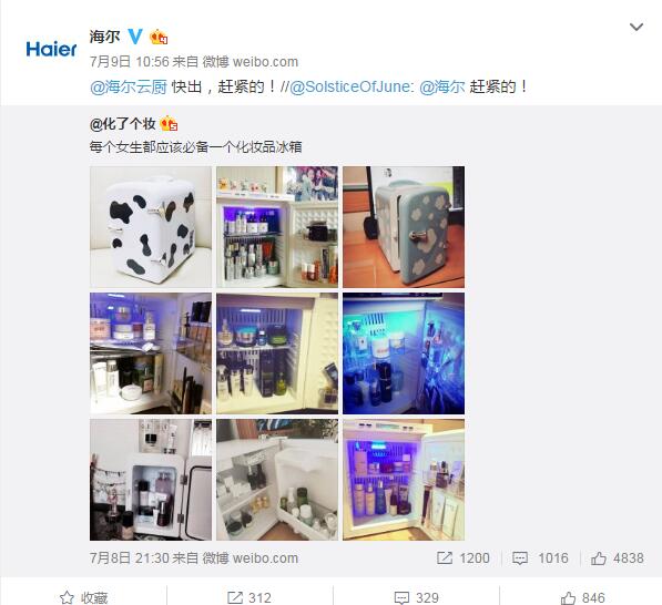 孫曉云女士梅花網(wǎng)傳播業(yè)大展上透露,運(yùn)營(yíng)著海爾官微的是一群平均年齡在1993年的90后,他們熱情又鬼點(diǎn)子多,領(lǐng)導(dǎo)給予了他們充分的信任,他們擁有著自主的決策權(quán)。當(dāng)一個(gè)熱點(diǎn)出來了,他們反應(yīng)熱點(diǎn)的能力非常迅速,想發(fā)的稿件從來不需要給領(lǐng)導(dǎo)審核,因此每一個(gè)新熱點(diǎn)出來,你都能第一時(shí)間看見海爾的身影。
